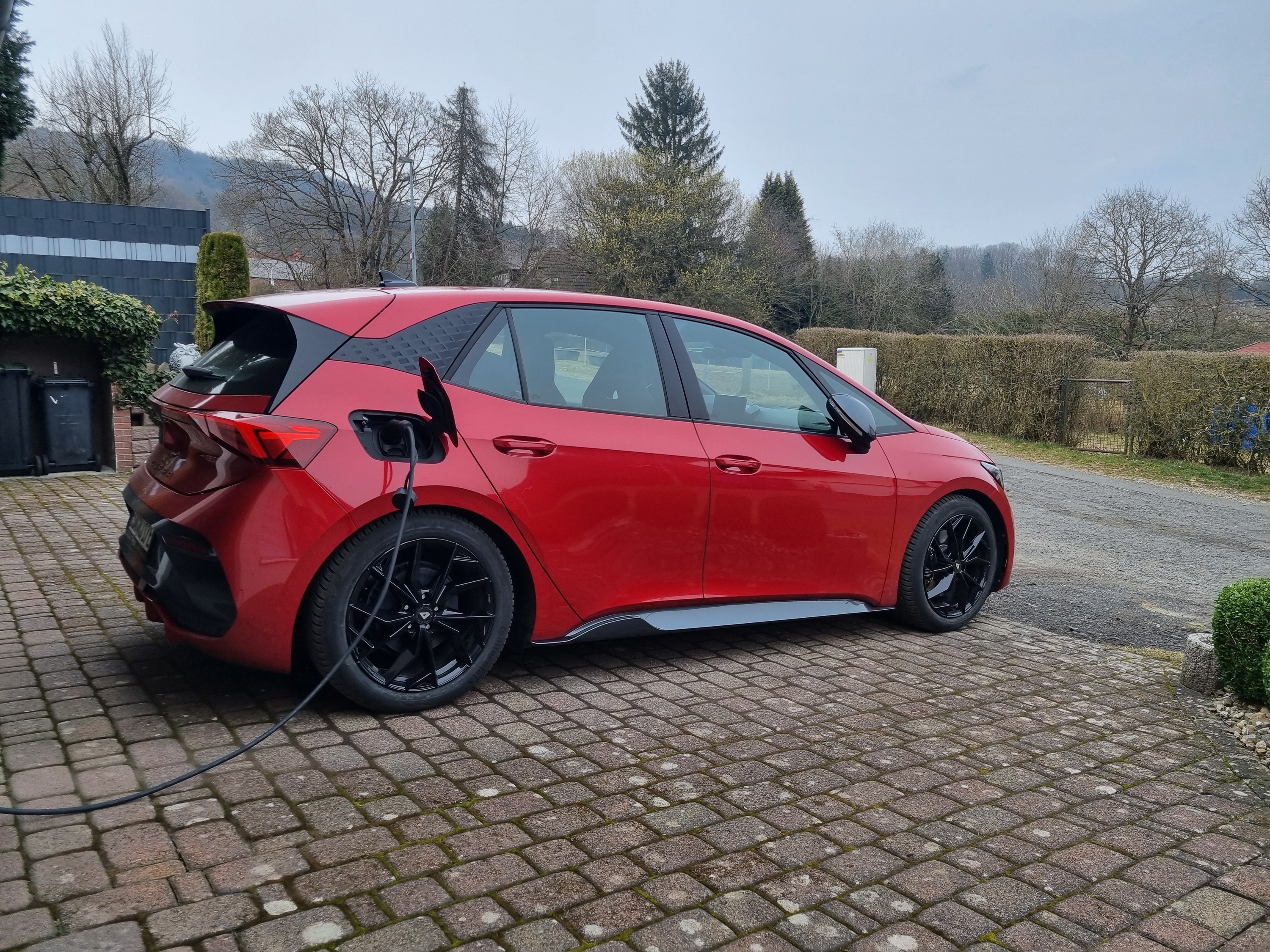 Die rot-schwarz Kombination sieht echt klasse aus. Hast du den Wagen tiefer gelegt?
