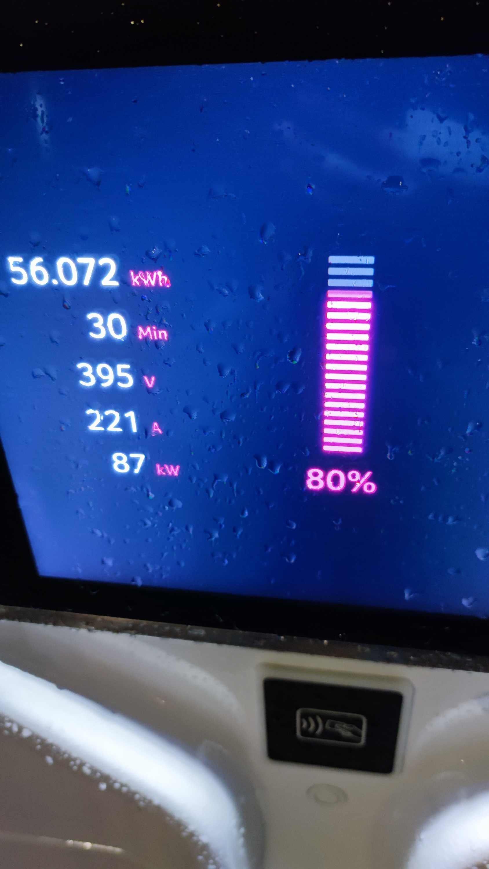 In 30 Minuten von 15 auf 80 % bei 8 Grad Außentemperatur.