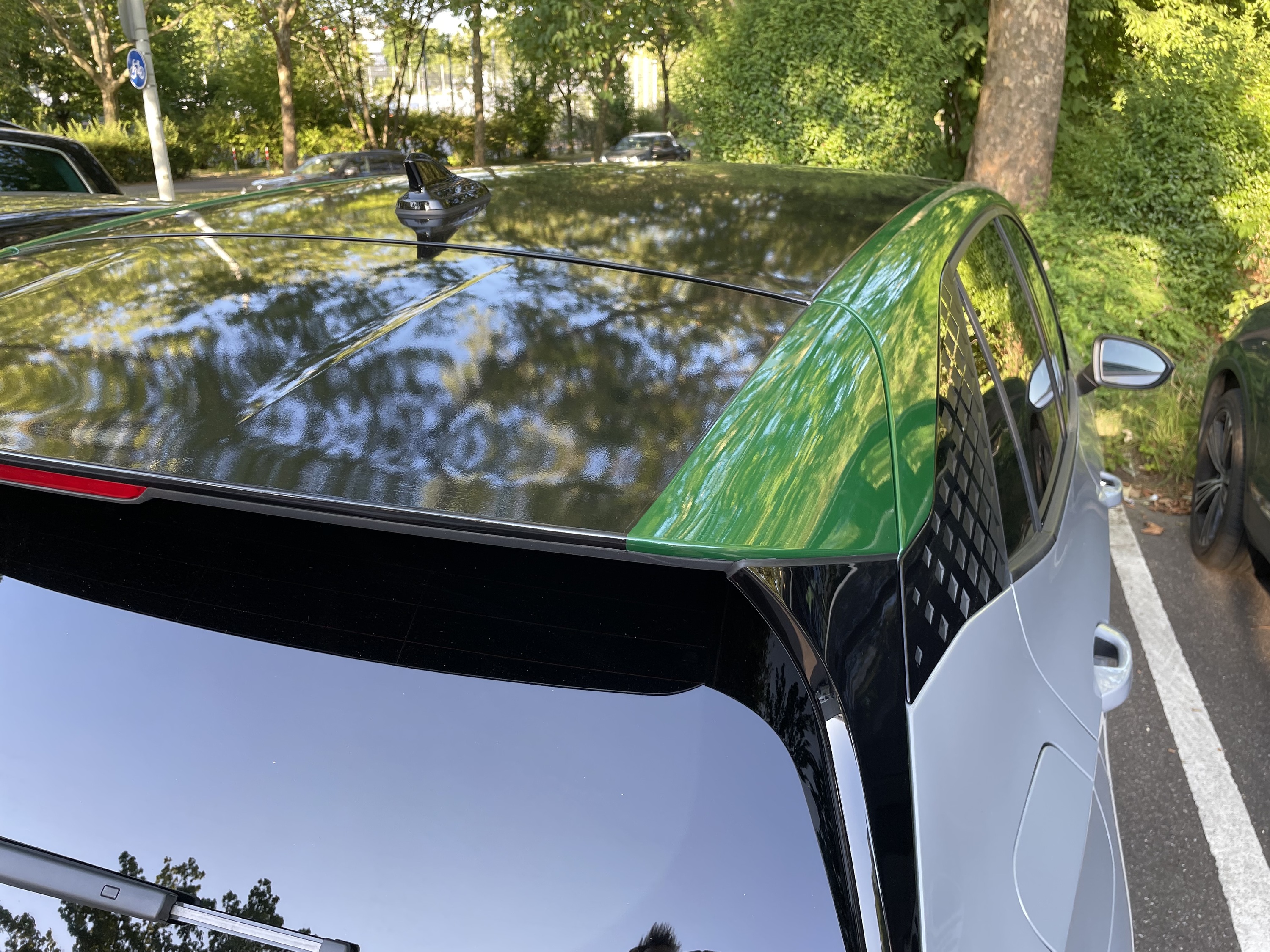 Folierung Dachrahmen in racinggreen und schwarzes Dach